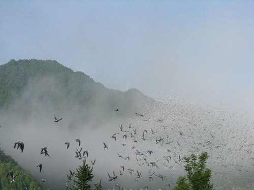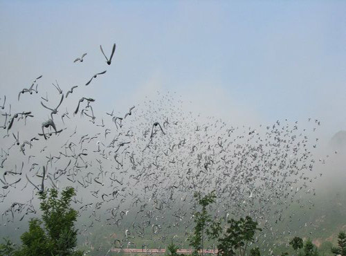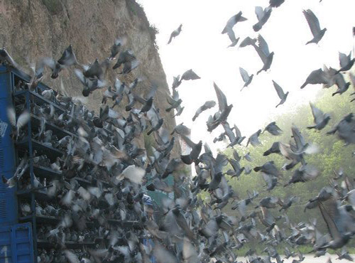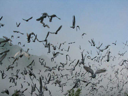 放飞鸽群