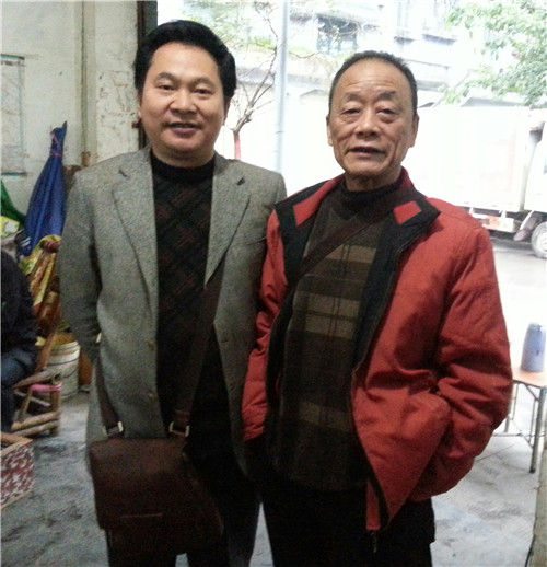 “川南鸽王”王荣春(左)与市鸽协主席刘志勤